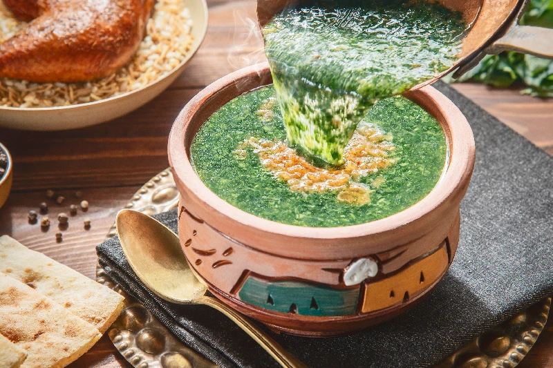Mulukhiyah è un piatto a base di foglie di iuta che vengono cotte in un brodo di aglio e pollo e servite con riso. È un cibo di conforto comune in Egitto e si ritiene che abbia proprietà medicinali.